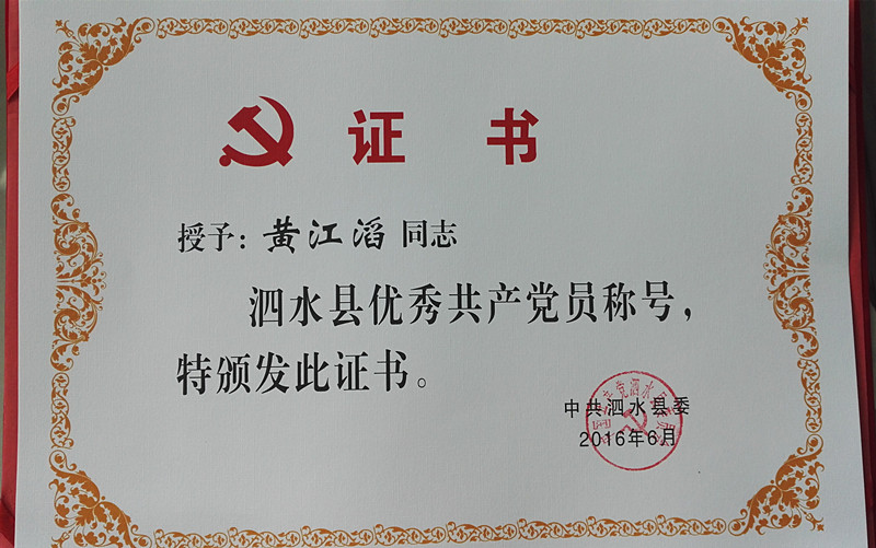 6月30日上午,泗水县召开庆祝中国共产党成立95周年大会,会上隆重表彰了近年来在全县经济社会发展中涌现出来的先进基层党组织、优秀共产党员及党务工作者。我校第一书记,派驻泗张镇三岔河村“第一书记:黄江滔被授予“优秀共产党员”荣誉称号。